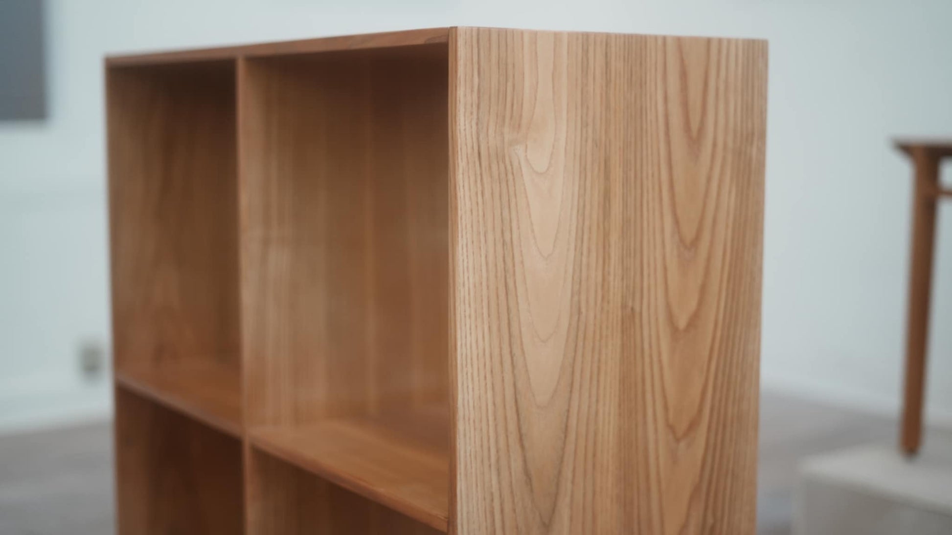 Reolen er fremstillet af asketræ, hvor hver fiber og åretegning er nøje udvalgt for at skabe et unikt og levende udtryk. Thue Zeuthen har med sin omfattende erfaring skabt et design, der ikke blot er et opbevaringsmøbel, men et kunstværk, der tilføjer karakter og ro til ethvert rum.