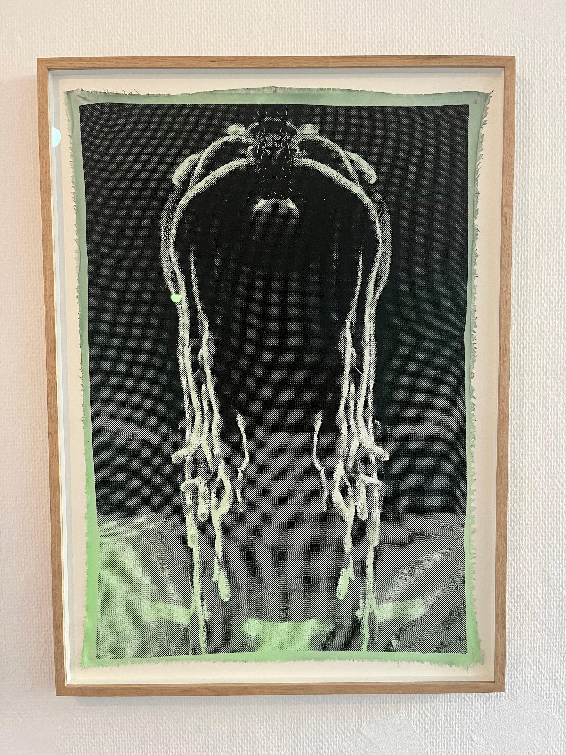 Montage, serigrafi, på håndmalet viscose, 2024.